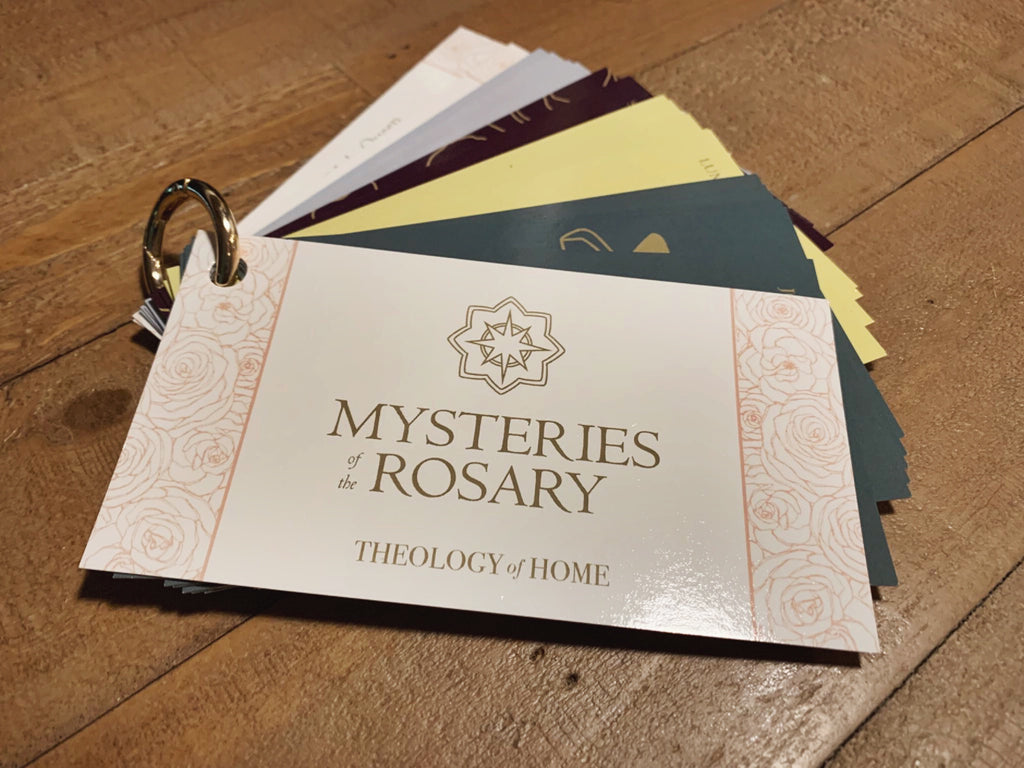 About the size of a cell phone, the Mysteries of Rosary are small enough to tuck into a purse, backpack, or glove box, or to stack on a nightstand.