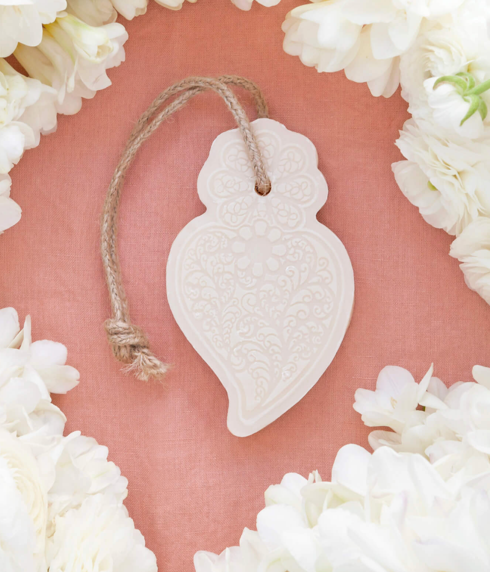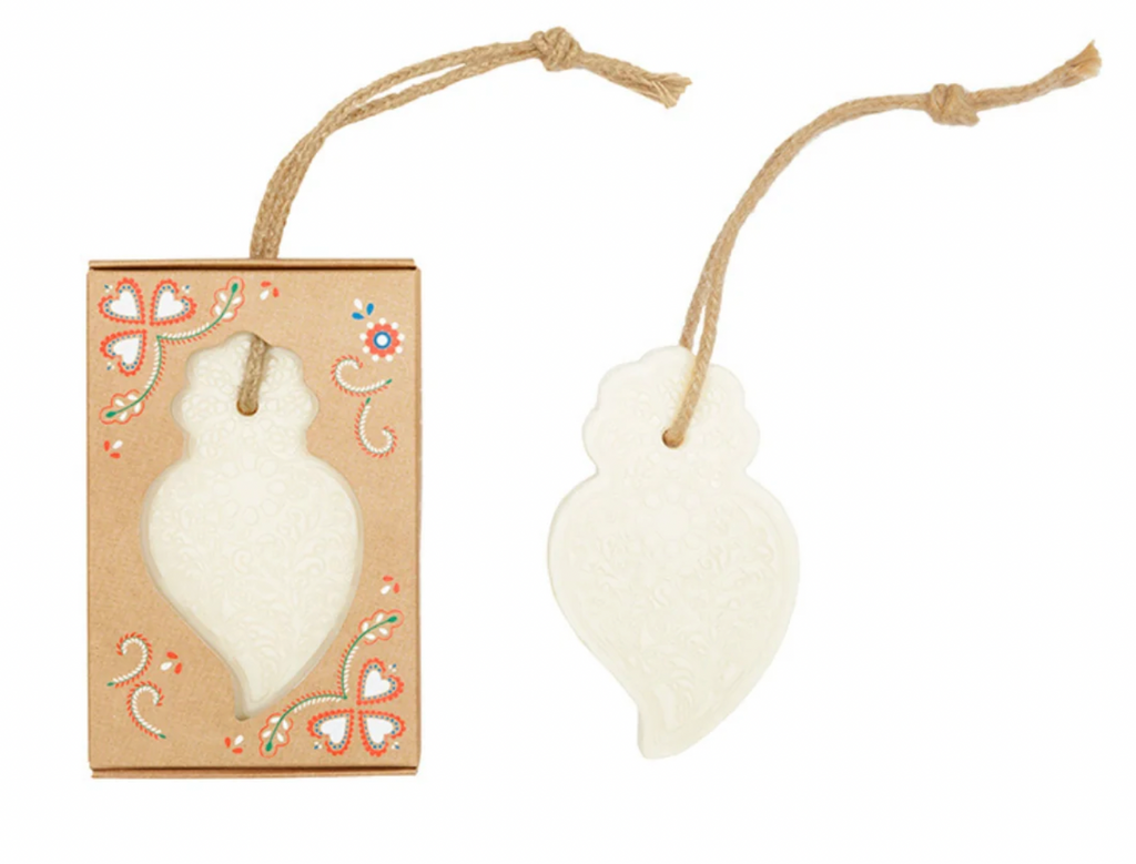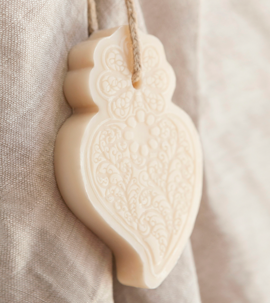 Sacred Heart Soap-on-a-Rope is an exquisite reinterpretation of one of Portugal’s most unique traditions, symbols, and devotions from the port city of Viana (located in the North of the country). The Sacred Heart of Jesus is the symbol of the city, a devotion that started by the townspeople in the 18th century and is connected to the pilgrimage site church in Viana of Our Lady of Agony, connected with many miracles associated with the fishing industry in the port city.